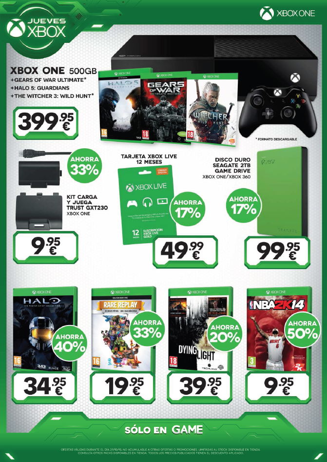Consola, juegos y accesorios de Xbox One y 360 en OFERTA => Sólo HOY en Game